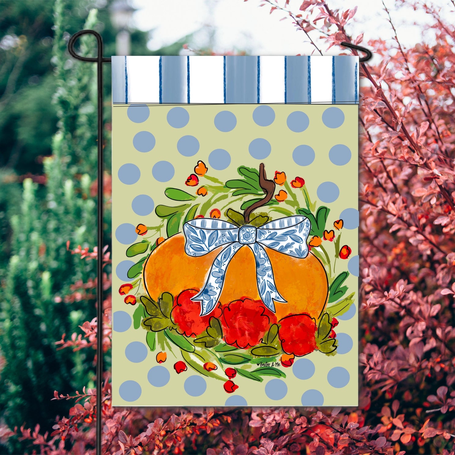 Blossom Pumpkin with Blue Ribbon Garden Flag