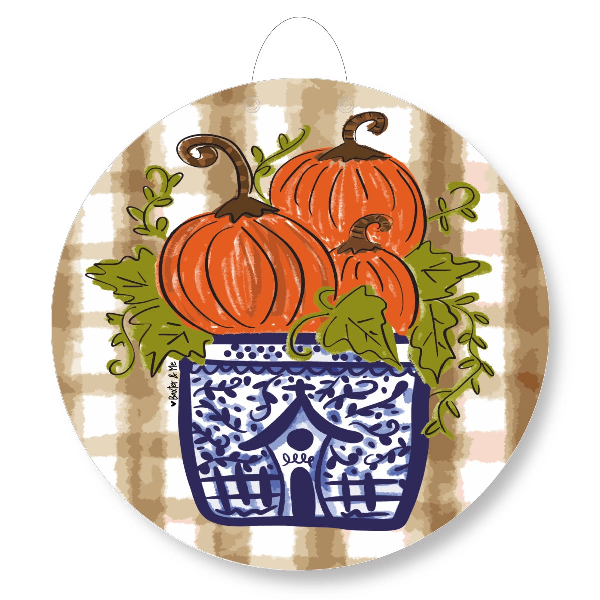 Blue Willow Pumpkin Stack Door Hanger