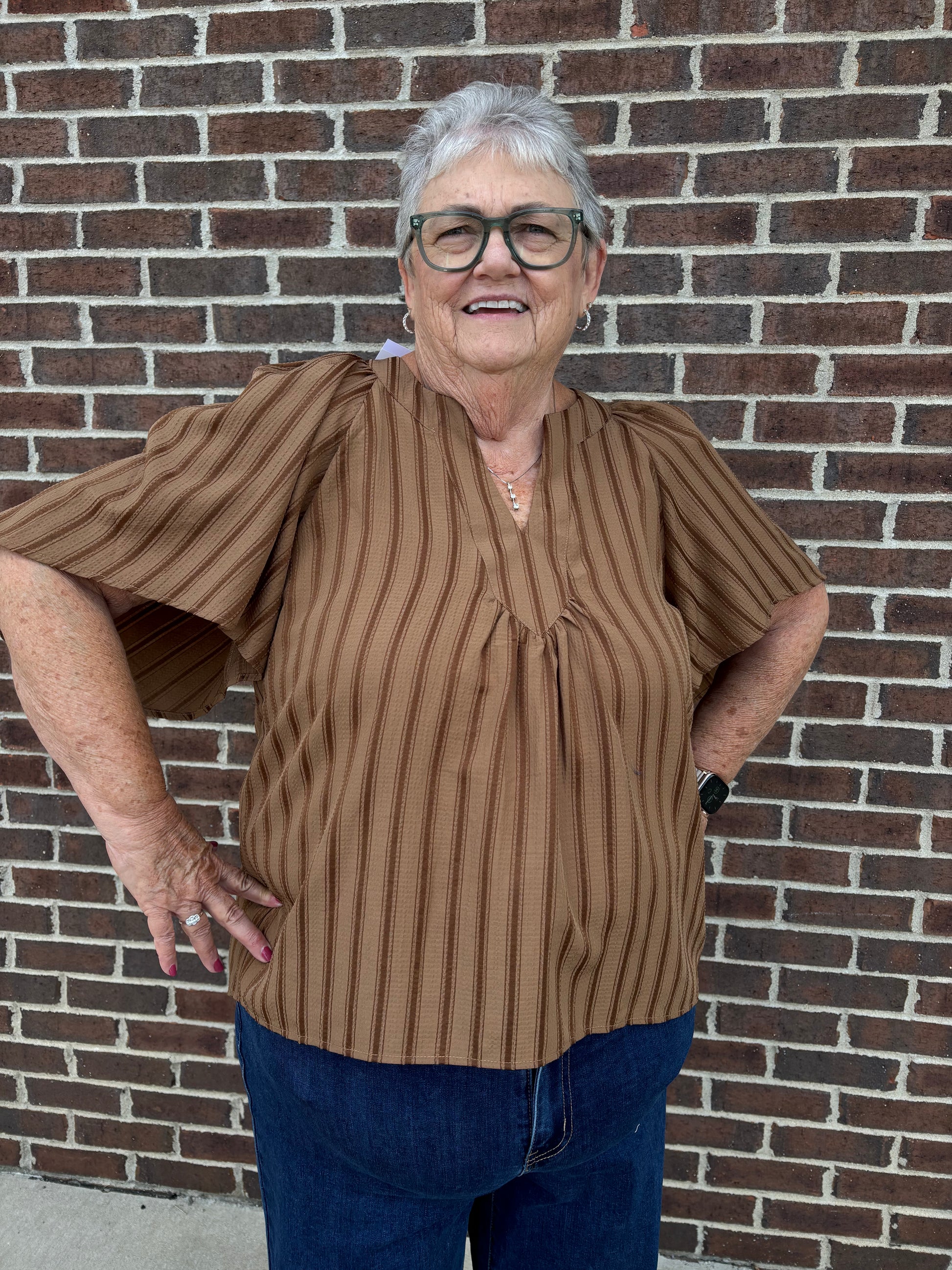Carole Christian Striped V-neck Cape Sleeve Top - Brown