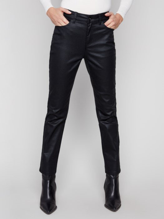 Charlie B Black Slim Leg Metallic Wax Twill Pants