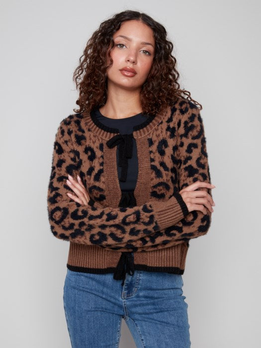 Charlie B Bow Tie Jacquard Knit Cardigan