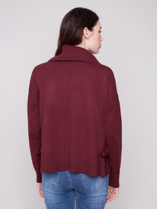 Charlie B Cabernet Cowl Neck Chevron Knit Sweater With Side Tie