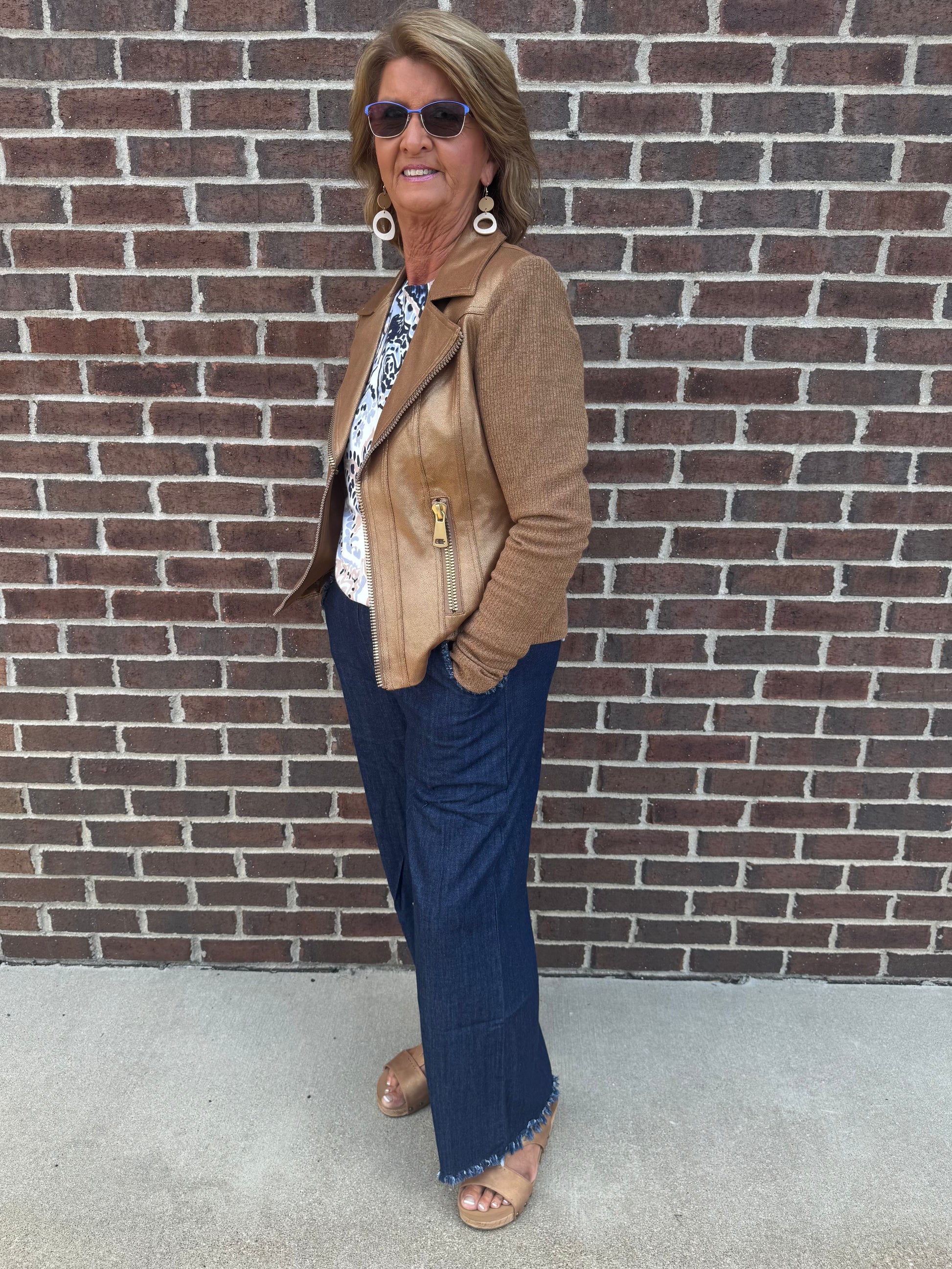 Foil Vintage Leather And Rib Knit Combo Perfecto