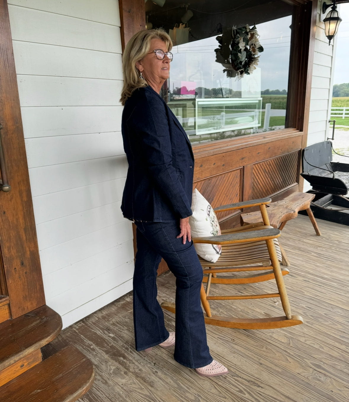 This dark wash pair of jeans in dark wash are perfect for work comfort and style! Featuring 5 pockets, stretch denim fabric, mid-rise, and longer length!