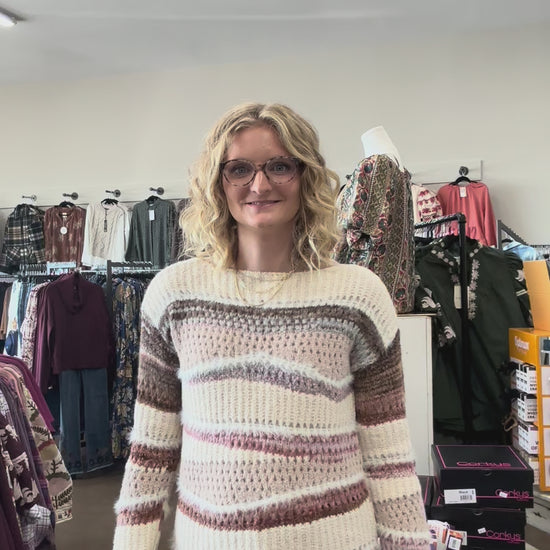 Stripe Wide Cuff V-Neck Sweater With Buttons On Sides And At Sleeves