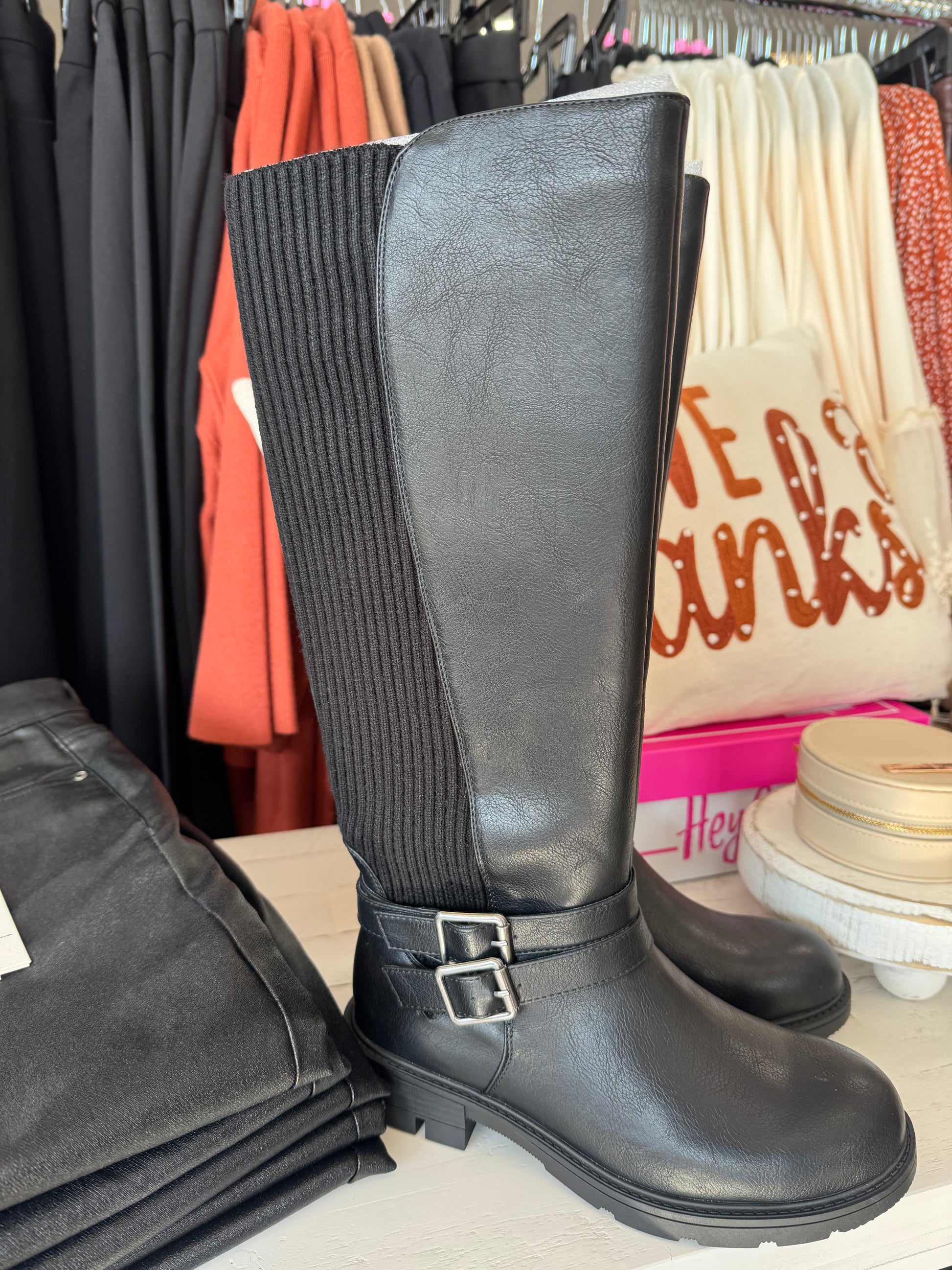 Corkys Black Hay Bale Wide Calf Friendly Tall Boots