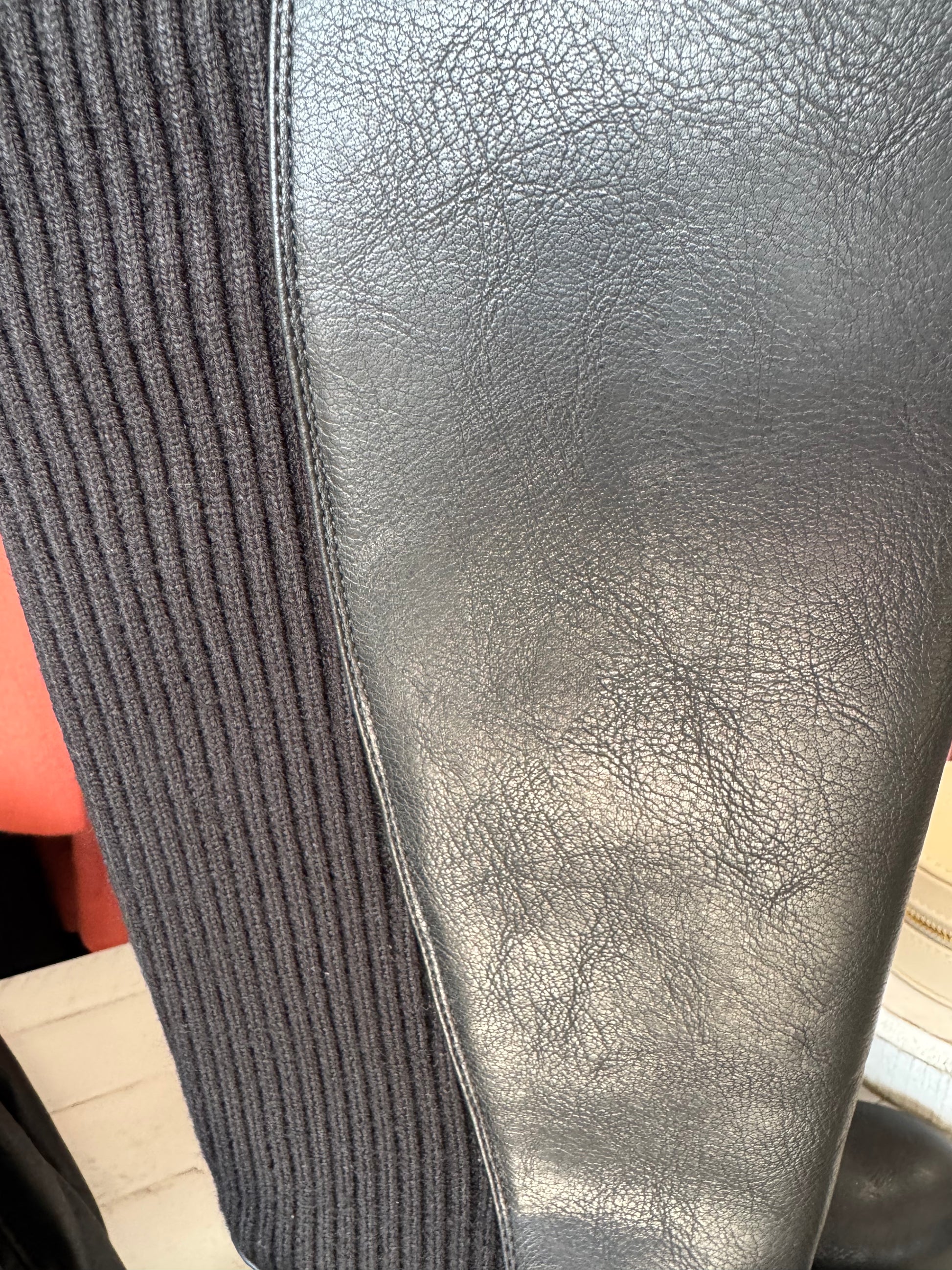 • Leather and knit upper