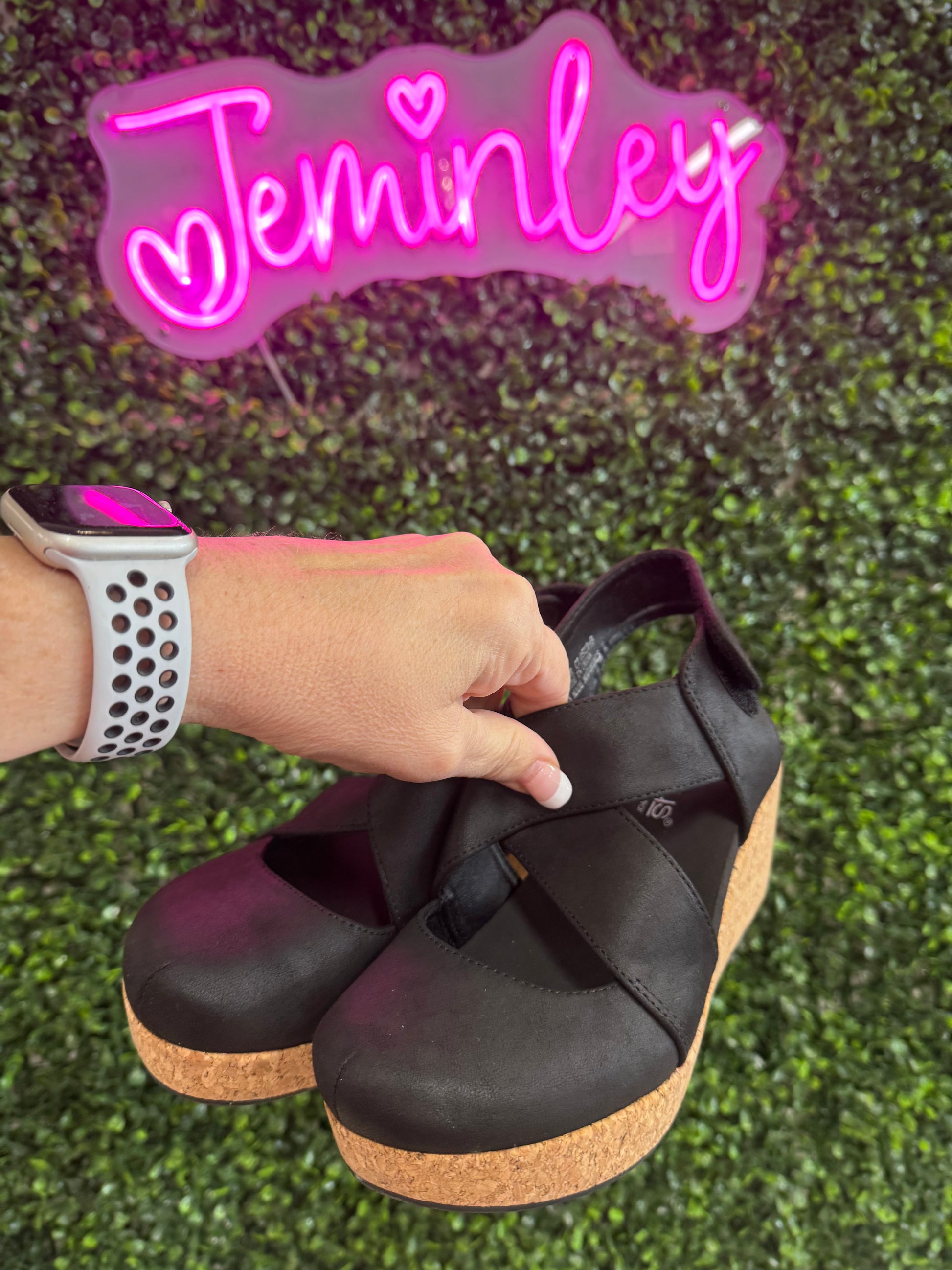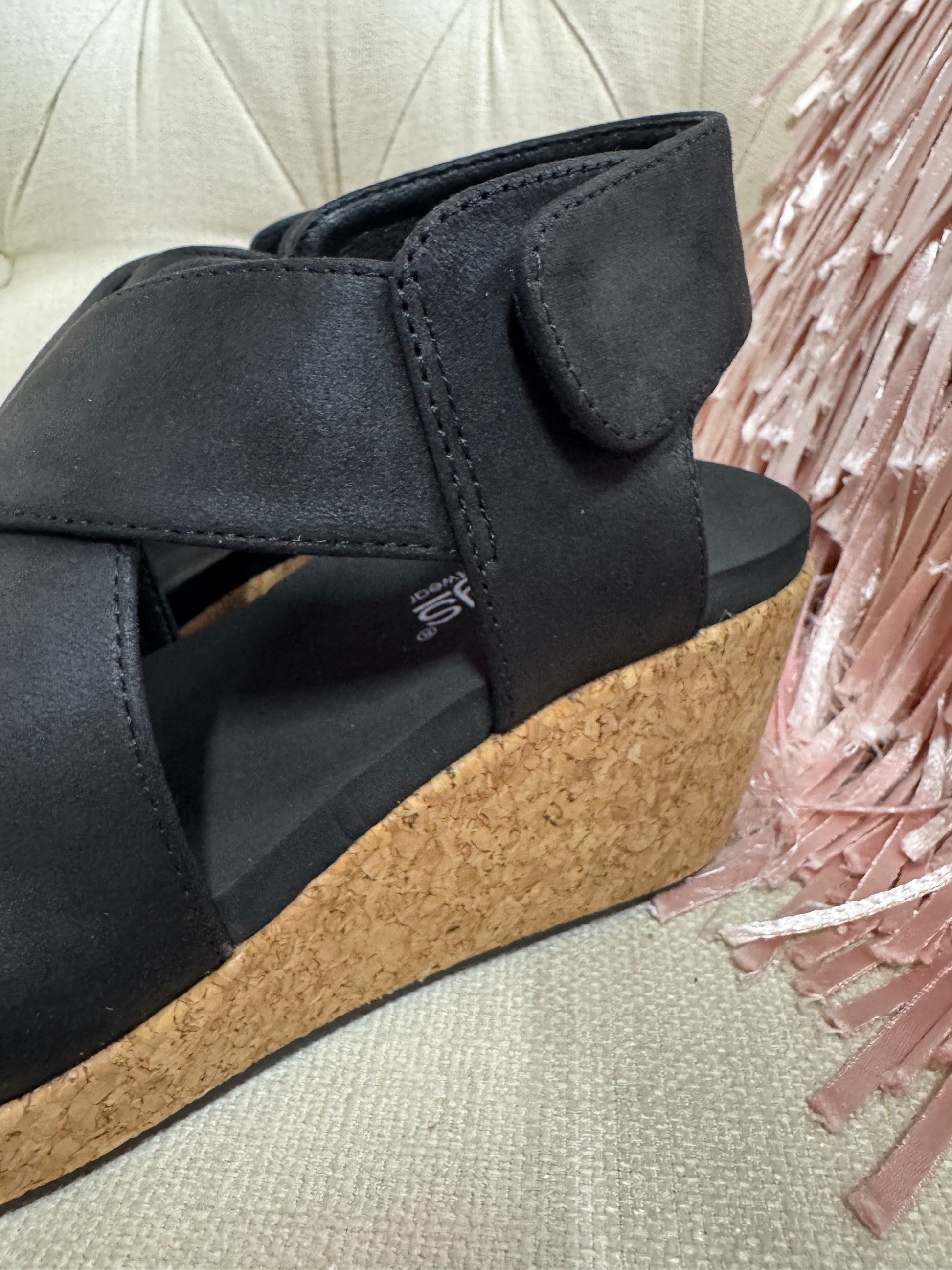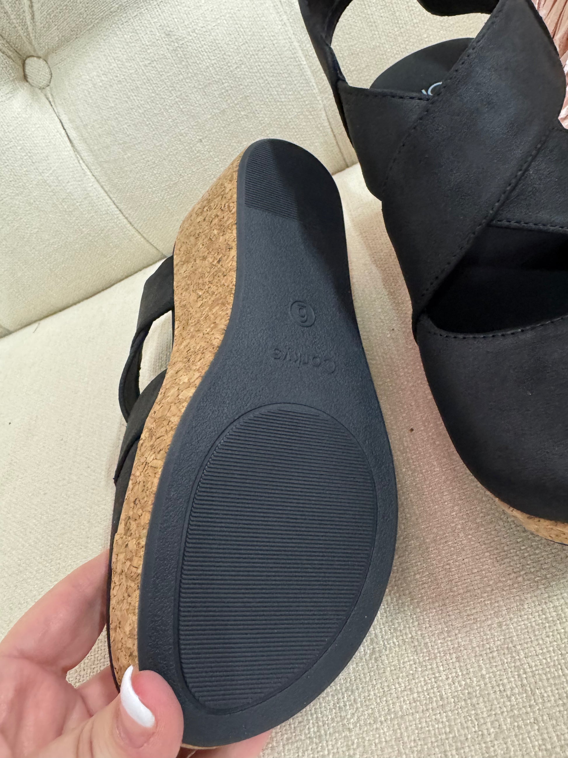 Cushioned footbed and cork wedge for all-day support