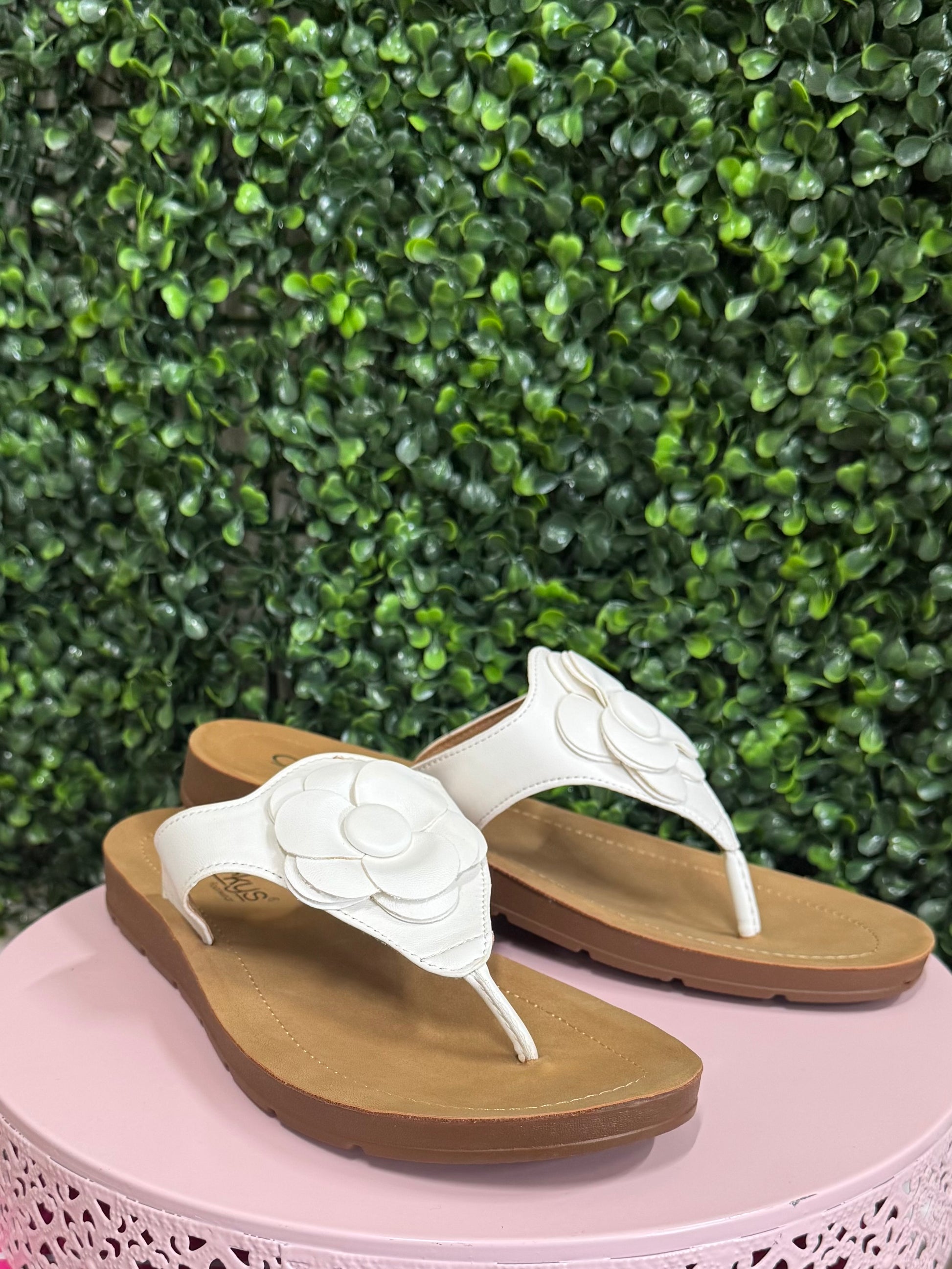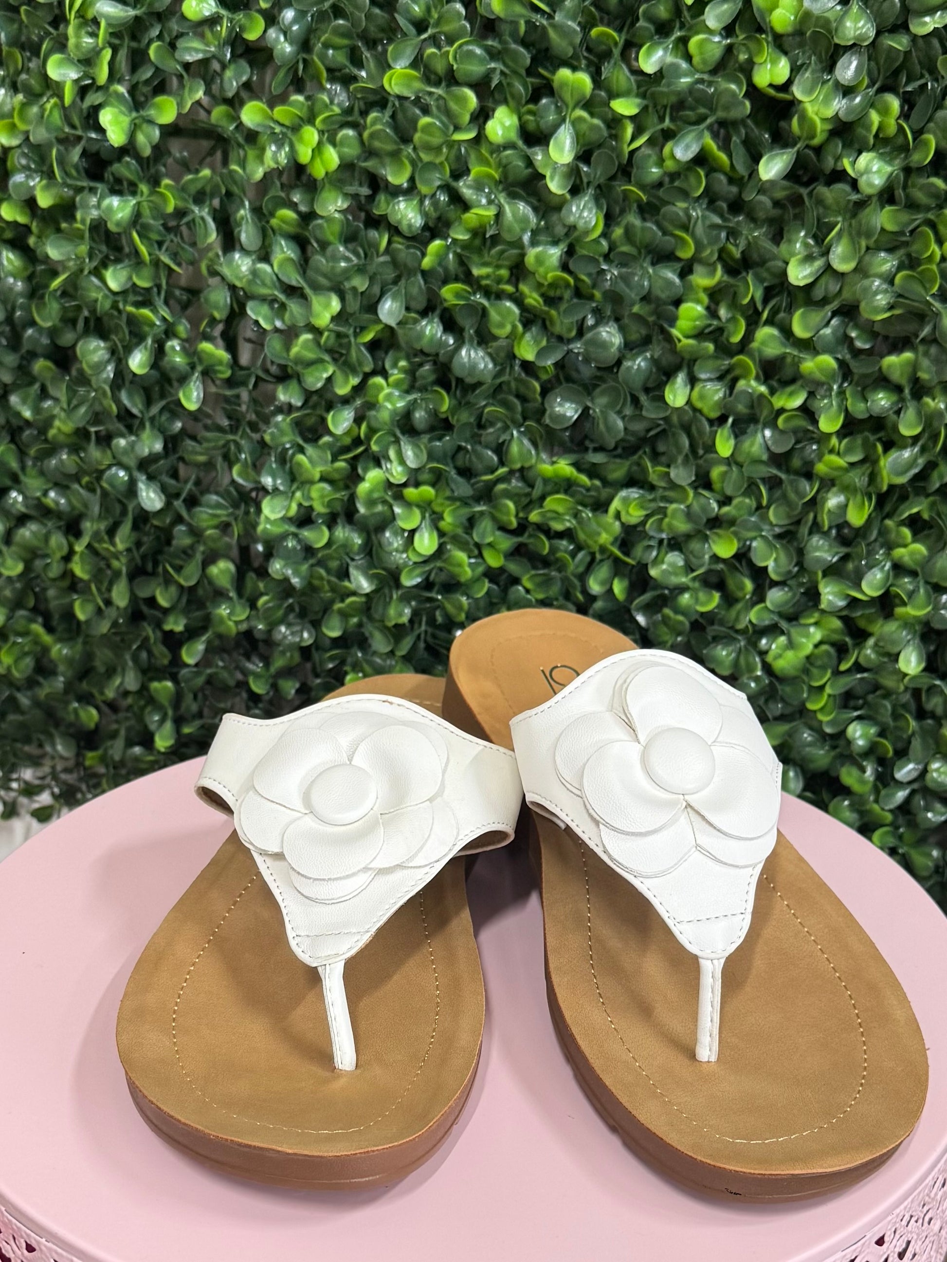 Elevate your everyday style with these effortlessly chic sandals. Lightweight and easy to slip on, they offer comfort without any extra bulk. A cushioned footbed keeps your feet supported all day, while the delicate flower detail on the strap adds a touch of feminine elegance. Perfect for both casual outings and dressier occasions, these versatile sandals are crafted with quality materials for long-lasting wear—making them a must-have for a boutique-ready wardrobe.