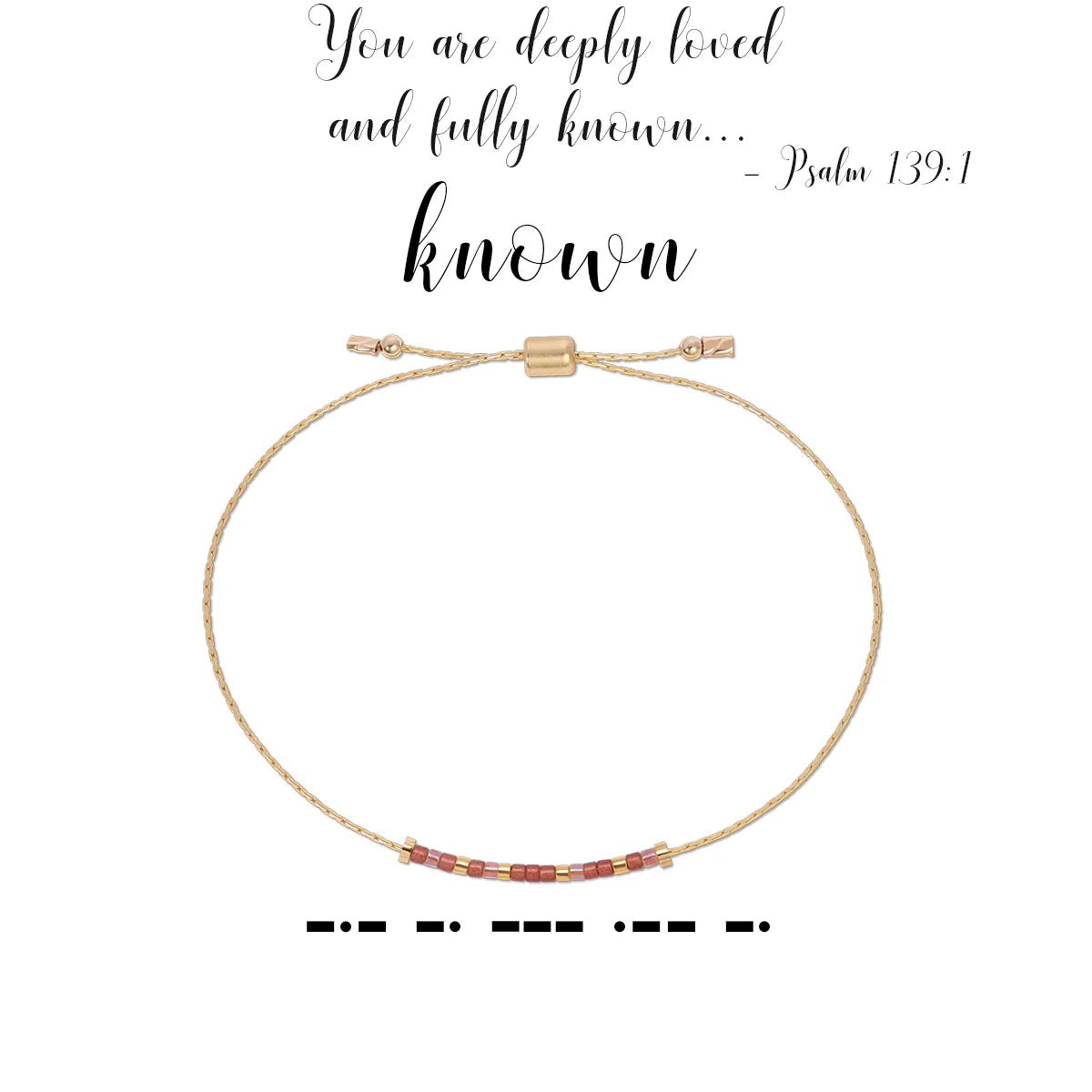 Introducing "Known" — a unique Morse code bracelet inspired by the profound truth found in Psalm 139:1: that we are deeply loved and fully known. This beautiful bracelet serves as a reminder that you are cherished, seen, and completely understood. Walk boldly, knowing you are held in perfect love and never alone. Give it as a thoughtful gift or treasure it for yourself — either way, let "Known" remind you of your incomparable worth each day.