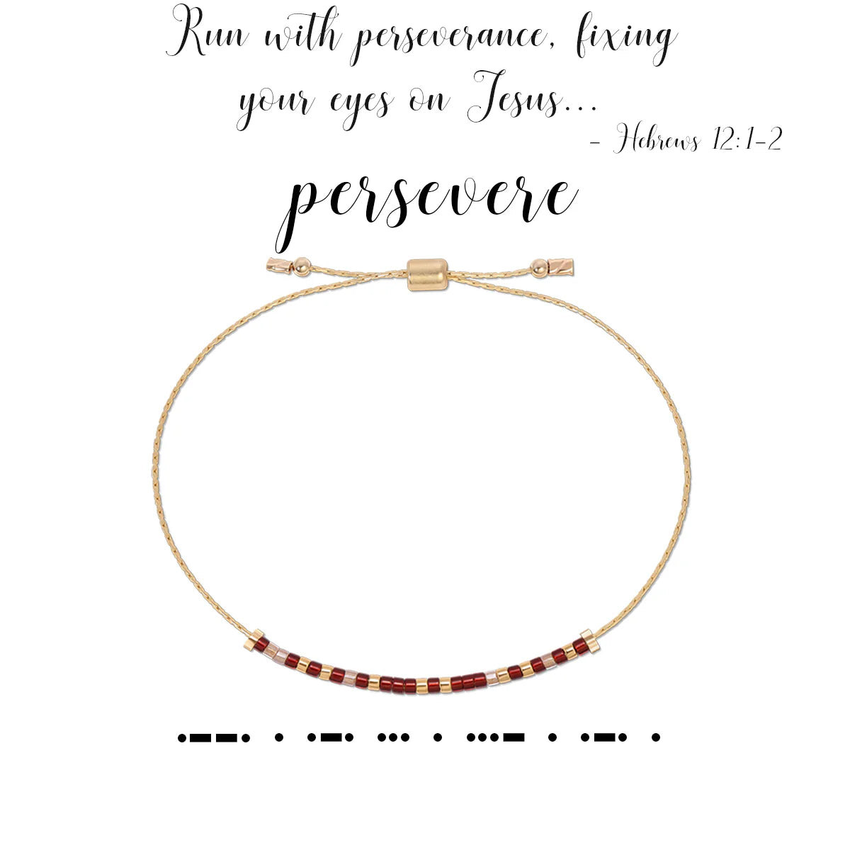 Embrace the meaning behind "Persevere"— a distinctive Morse code bracelet designed to embody faith in action. Inspired by Hebrews 12:1-2, this piece is a quiet but powerful encouragement to stay focused and resilient, no matter what life brings. Let "Persevere" remind you to let go of what weighs you down and to run your race with hope, courage, and fully reliant on Jesus. Wherever you go, this symbol of endurance and trust is there to support you, one step at a time.