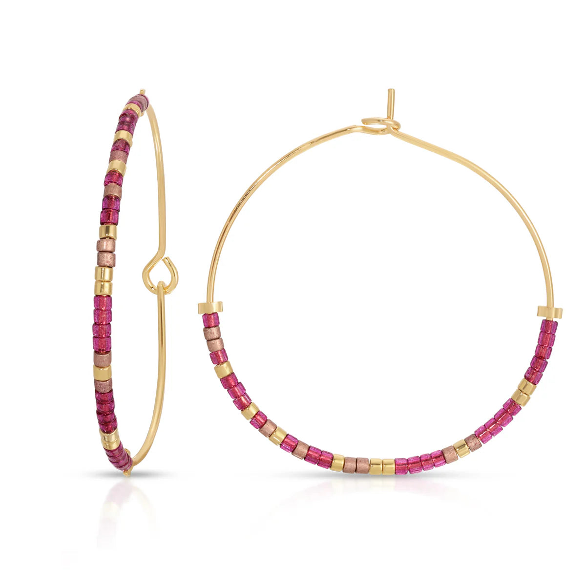 Our hoop earrings are gold-filled and 35mm (1.3") wide.
