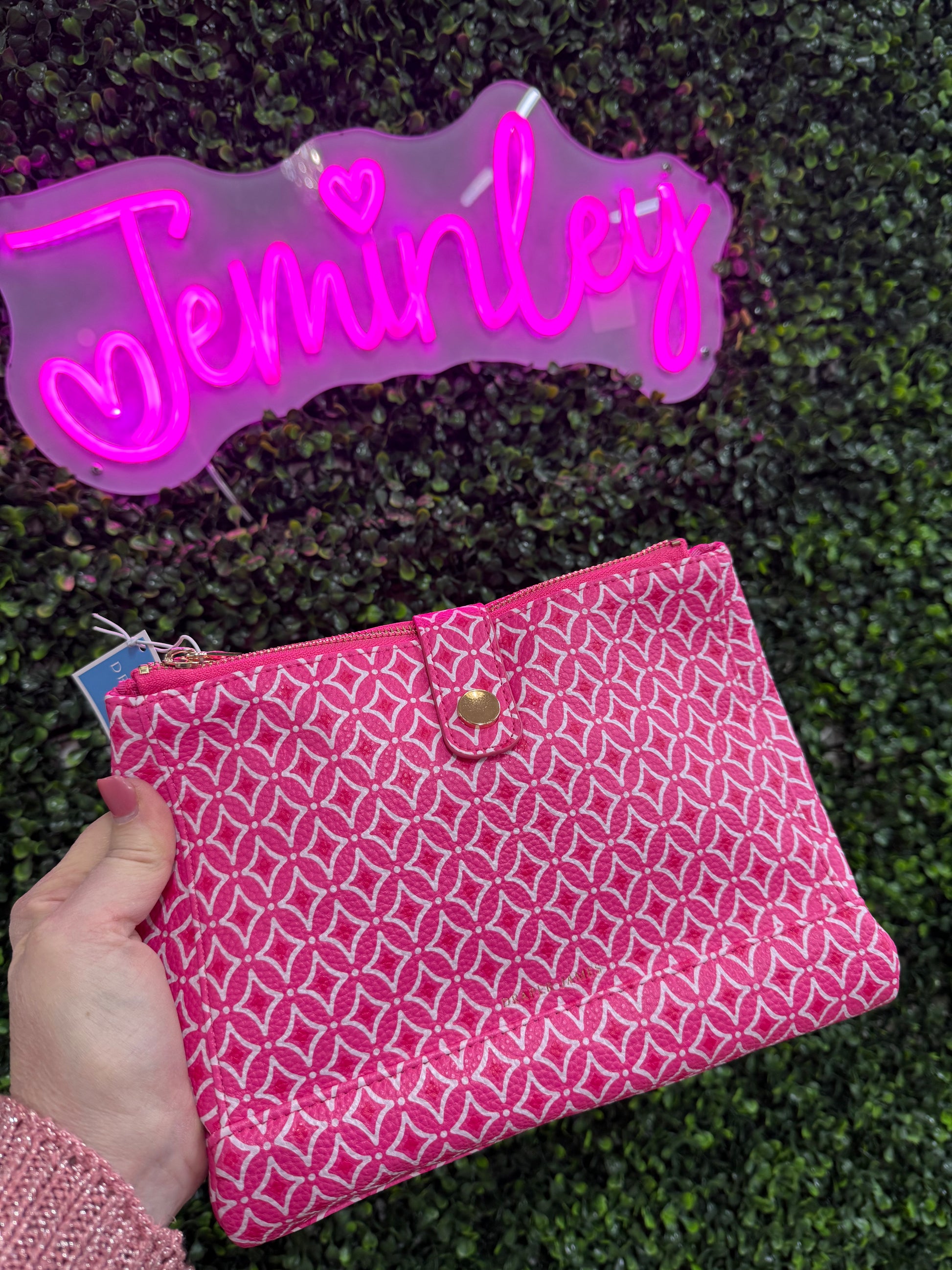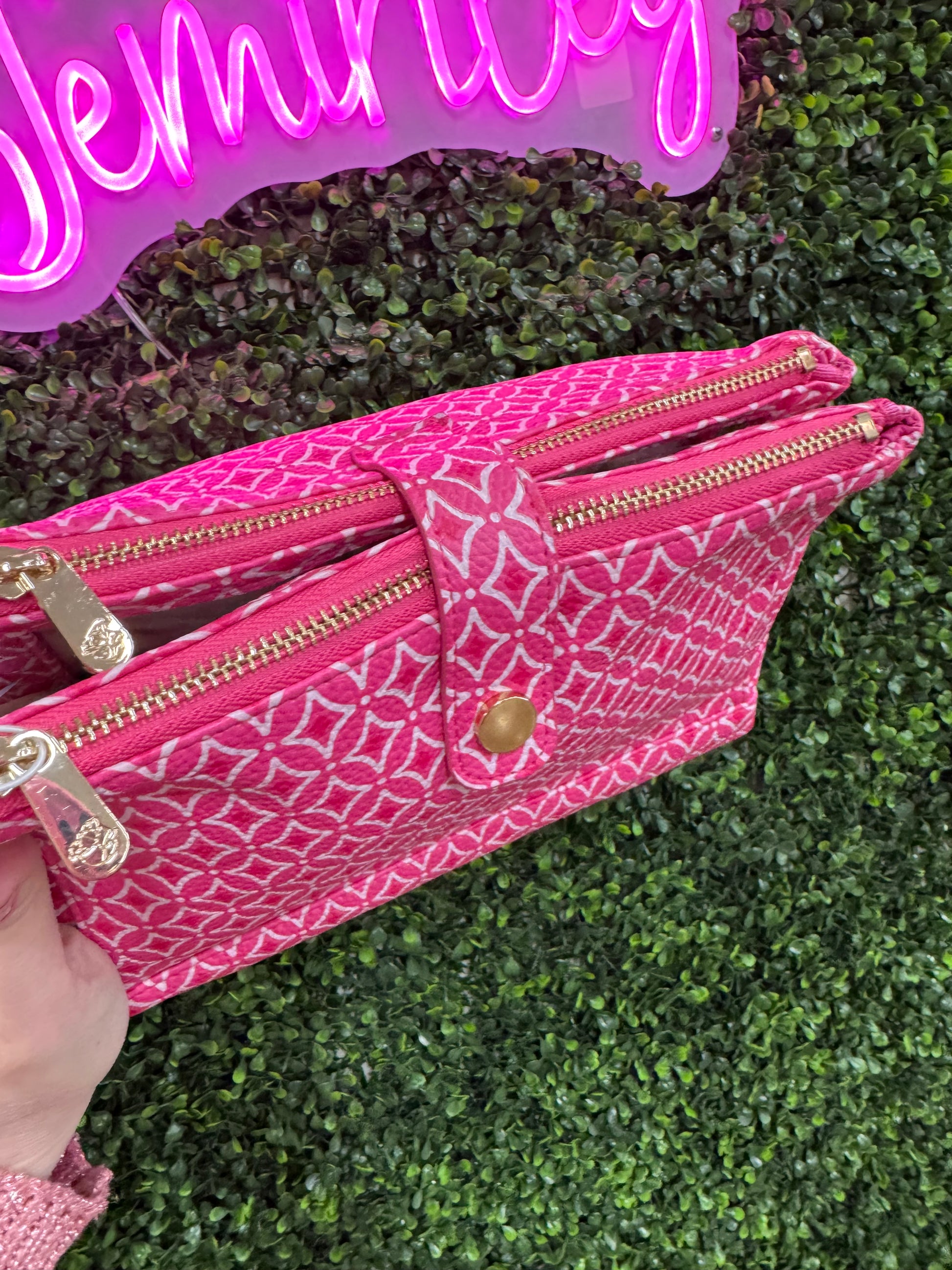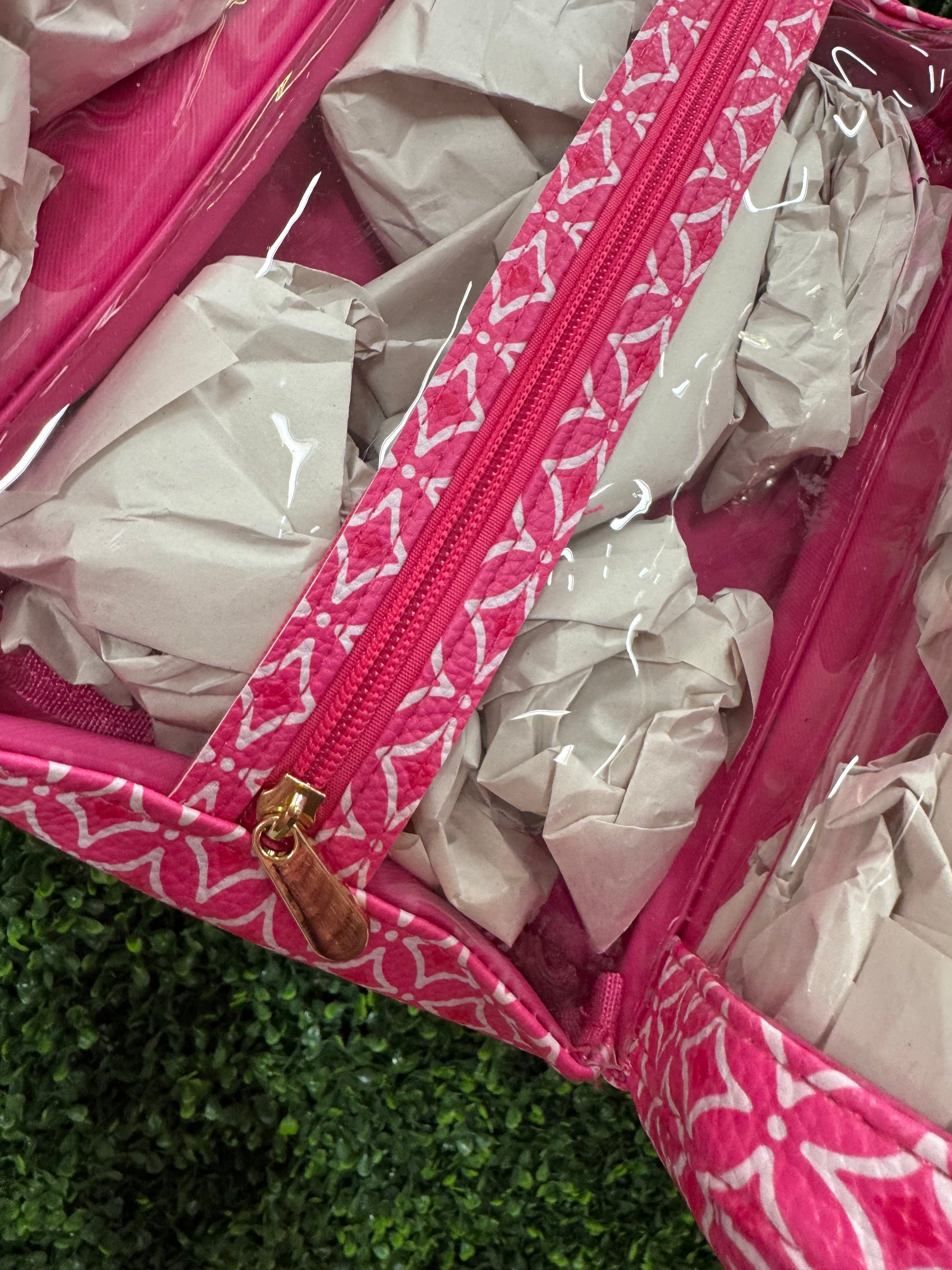 This Draper James cosmetic travel pouch has several different areas to separate your cosmetics while on the go.