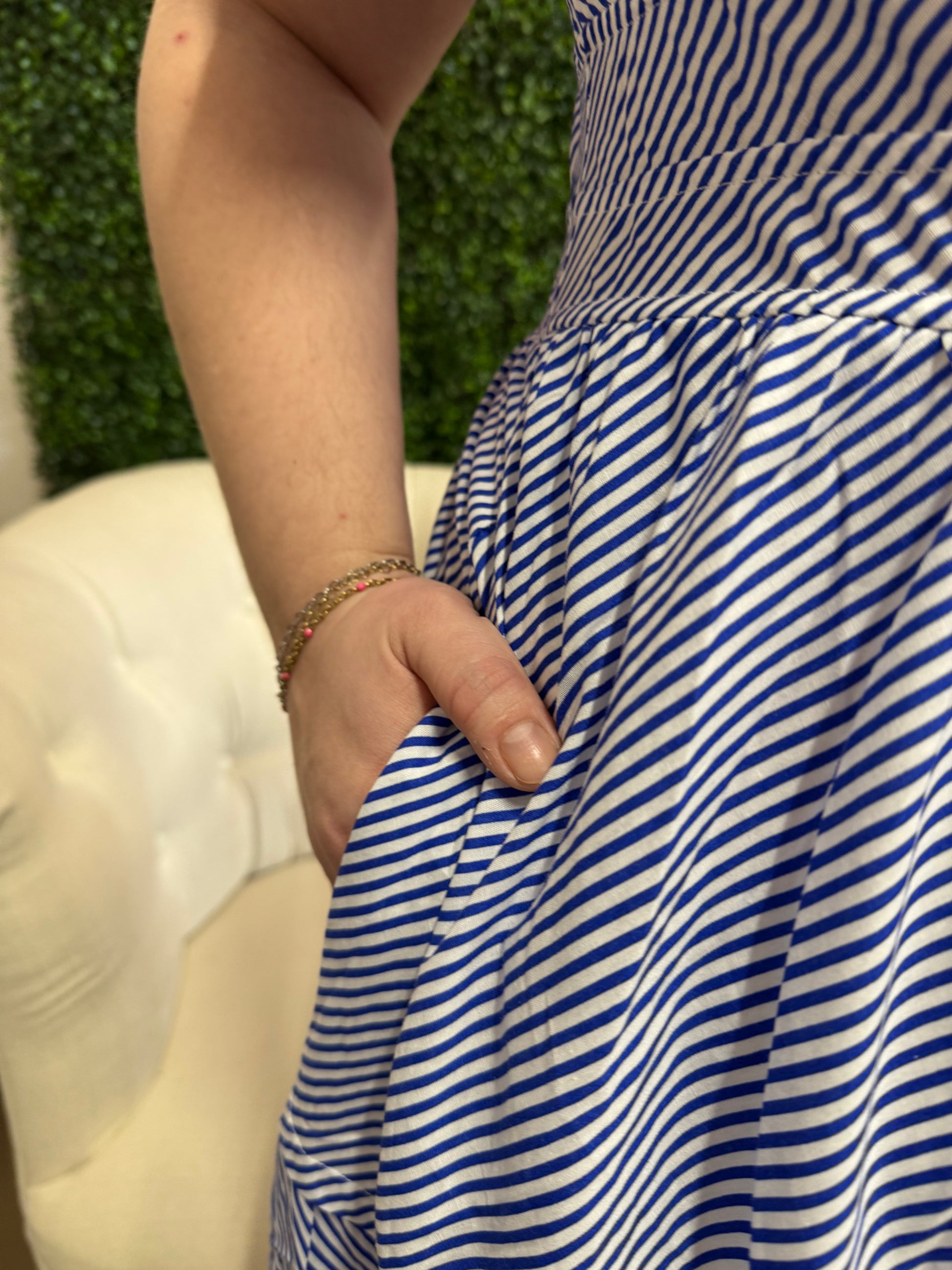 Entro Blue and White Striped Tiered Maxi with Pockets