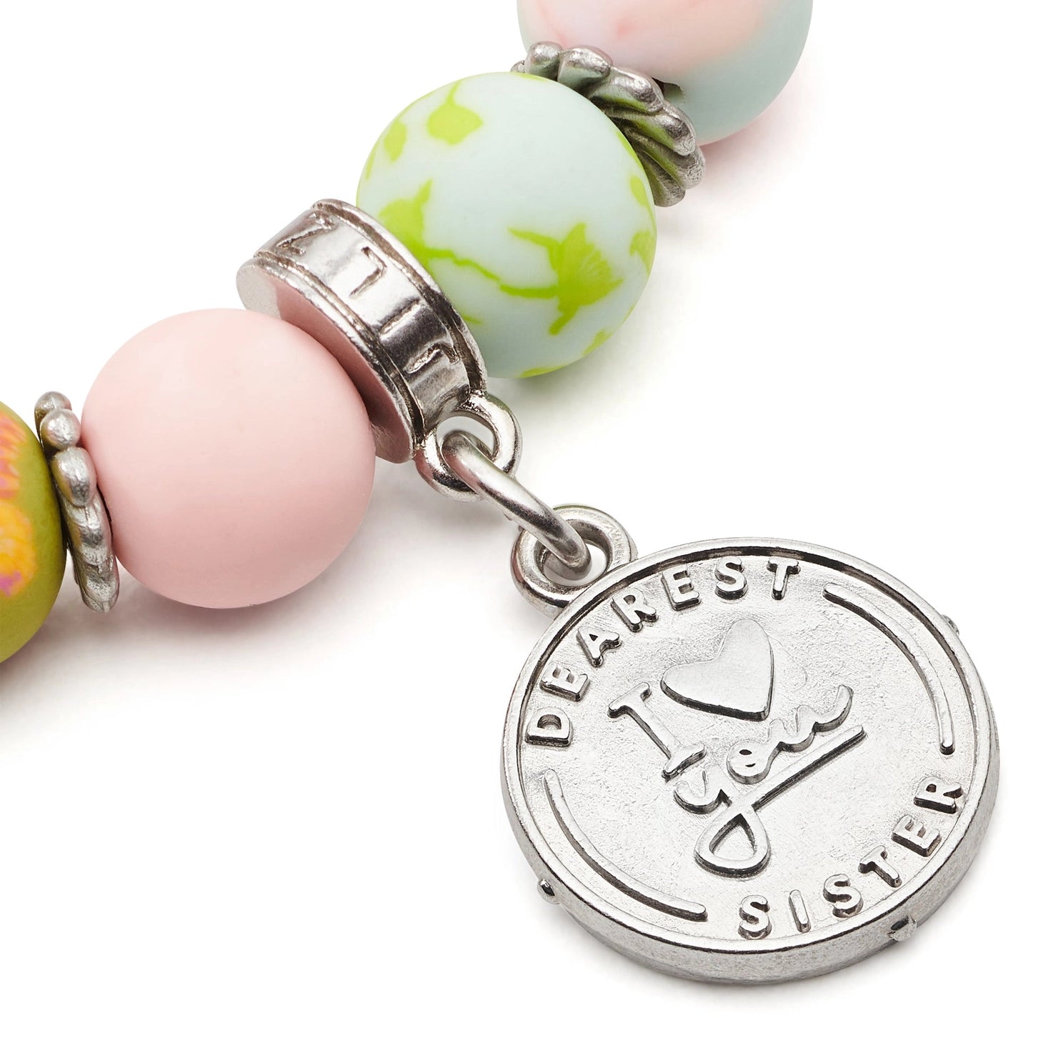 Handcrafted 8mm polymer clay beads with a unique charm on a durable 1.2mm elastic cord