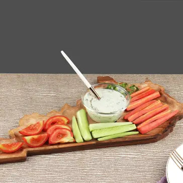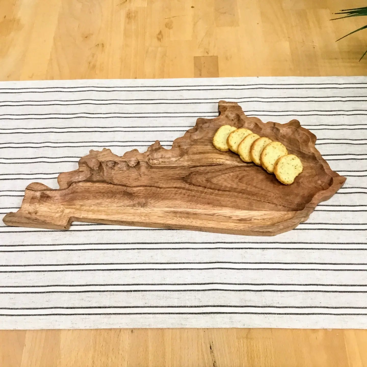The KENTUCKY Acacia Wood Trench Cutting/Cheese Board is a versatile and stylish addition to any home. Crafted from high-quality acacia wood, this board is not only durable but also adds a touch of natural beauty to your kitchen. Its unique trench design allows for easy collection and disposal of food scraps, making it perfect for cutting and chopping fruits, vegetables, and meats. Additionally, this board doubles as a cheese board, providing a convenient and elegant way to serve your favorite cheeses to guests. With its state pride engraving, this board is a must-have for any Kentucky resident or enthusiast. Elevate your serverware collection with this functional and aesthetically pleasing chopping board.