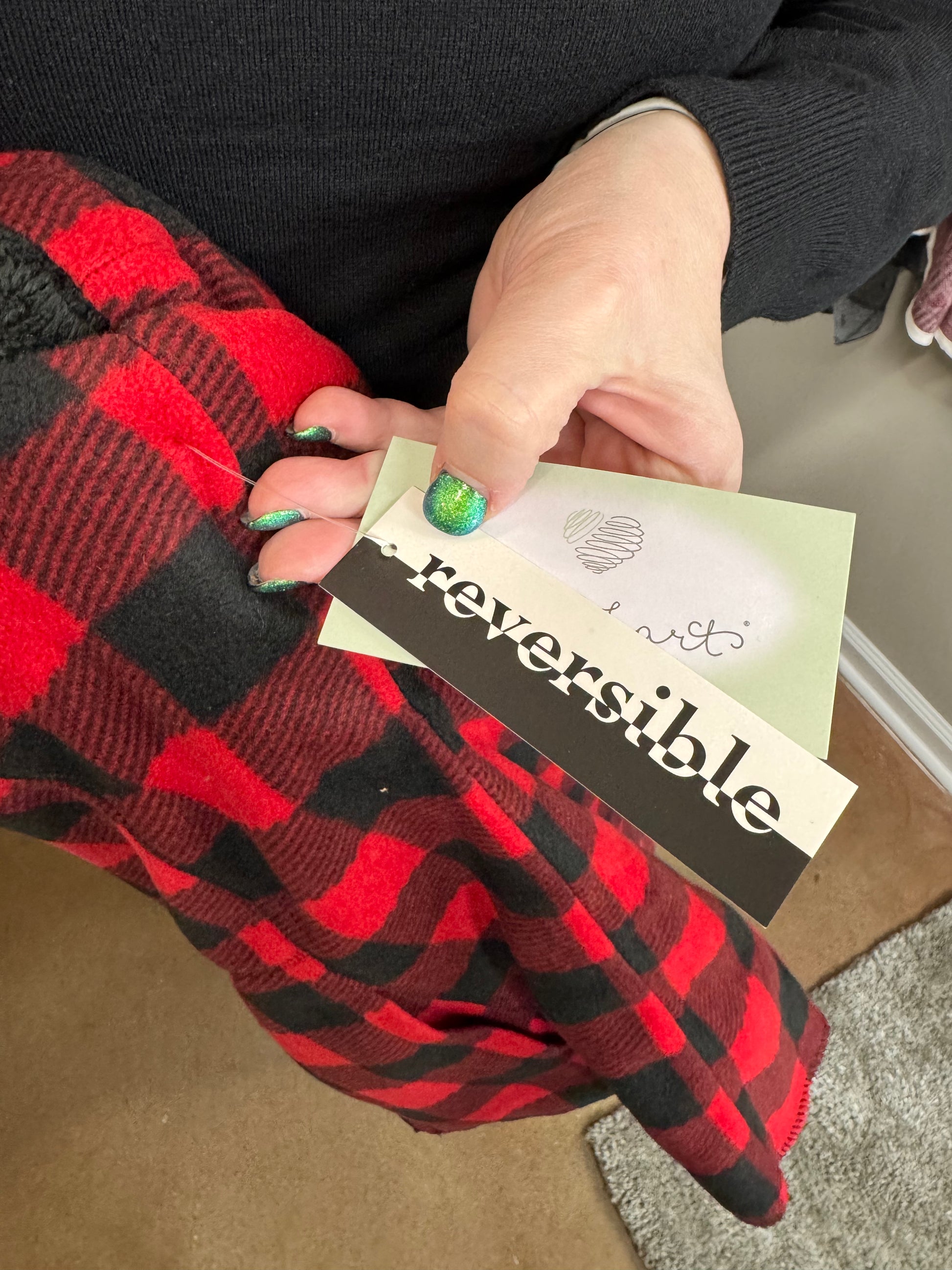 Keren Hart Black and White Reversible Buffalo Plaid and Black Sherpa Vest
