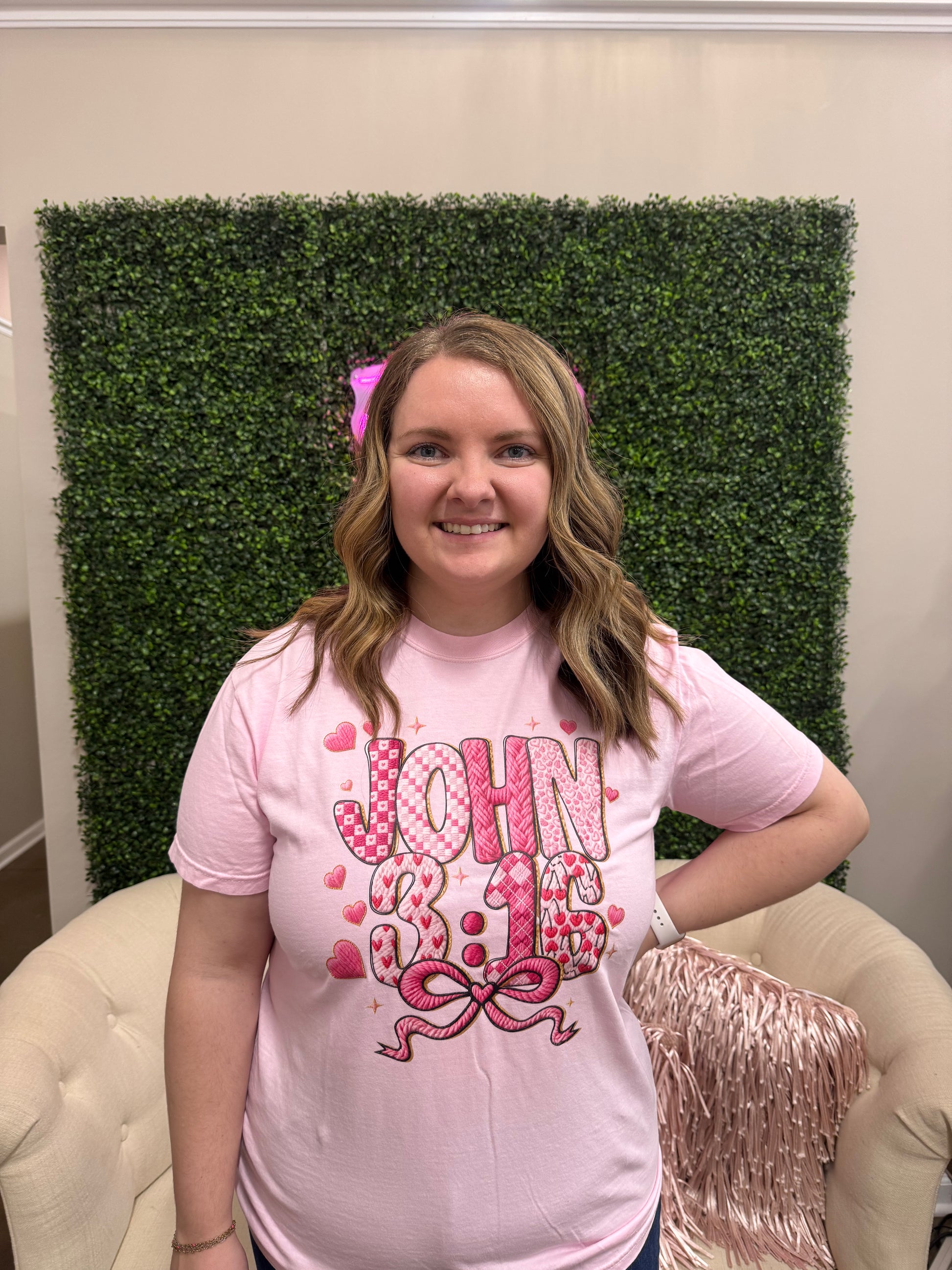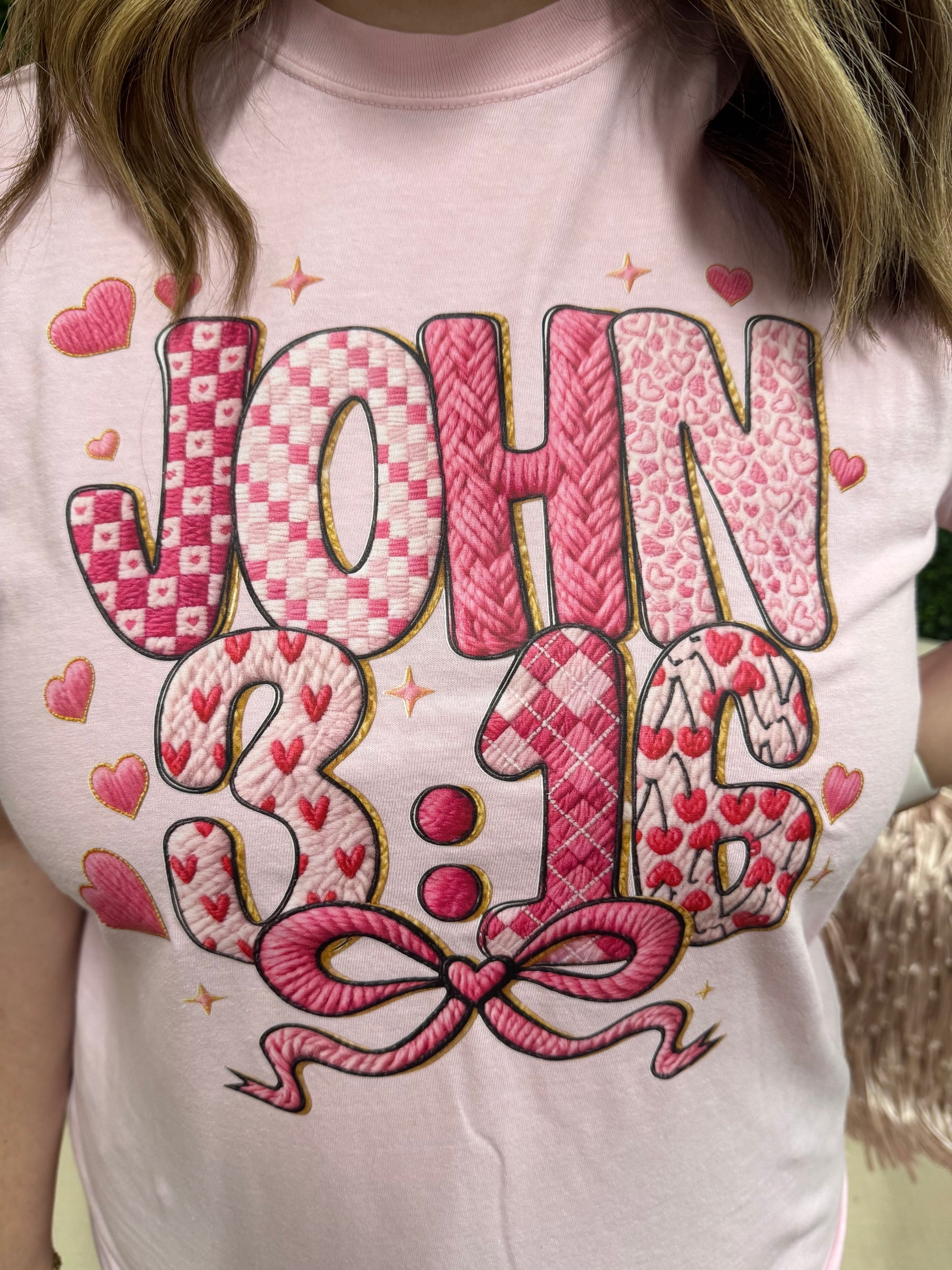 Pink John 3:16 tee with bow